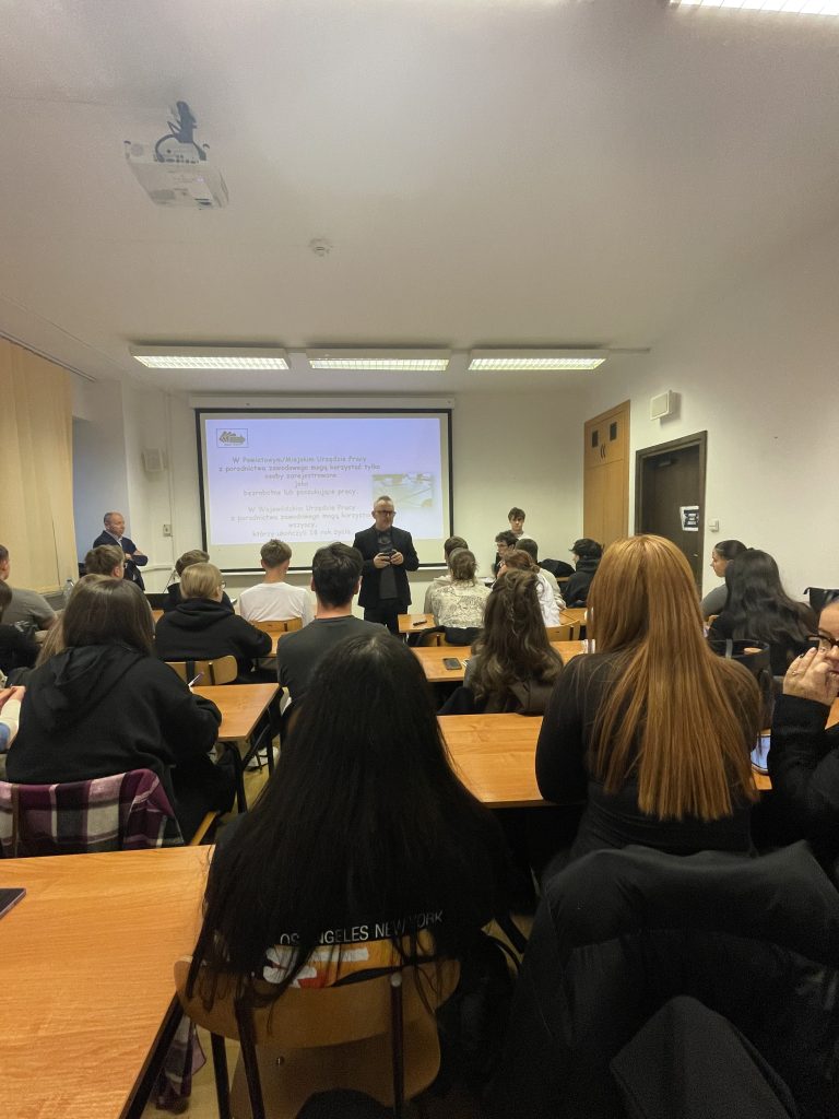 16 października 2025 r. studenci Prawa w Biznesie I i II stopnia spotkali się z panem Mariuszem Wiktorowiczem – Naczelnikiem Centrum Informacji i Planowania Kariery Zawodowej – z Wojewódzkiego Urzędu Pracy w Lublinie.