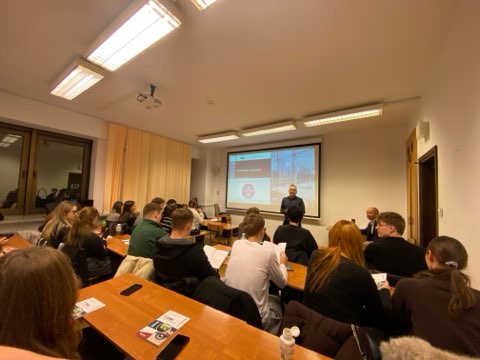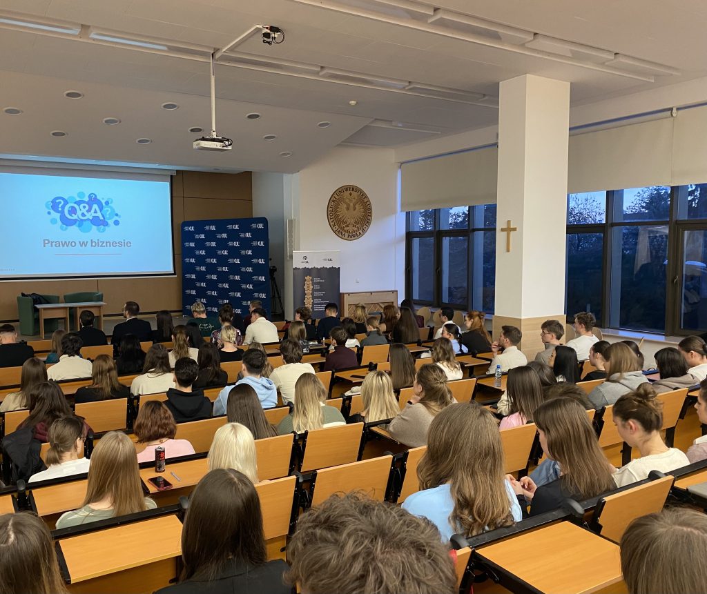 Podczas odbywającego się 20 listopada 2025 r.. spotkania studenci mieli szasnę porozmawiać o możliwych ścieżkach rozwoju po kierunku prawo w biznesie.