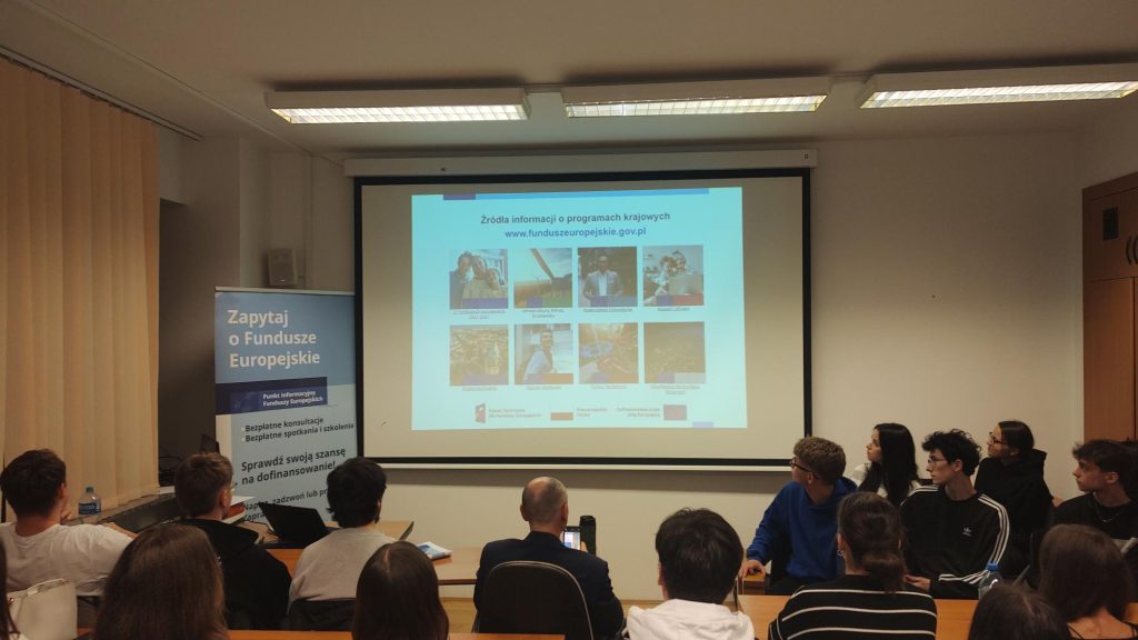 Spotkanie studentów PwB I i II stopnia z Krzysztofem Prybułą na temat Funduszy europejskich.